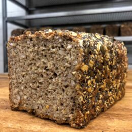 Ingredienti 1kg farina di segale 300g lievito madre 900g acqua 20g sale 300g miglio cotto 300g sorgo cotto Semi misti Procedimento In un recipiente mescolare la farina, il lievito madre e l’acqua tiepida.
